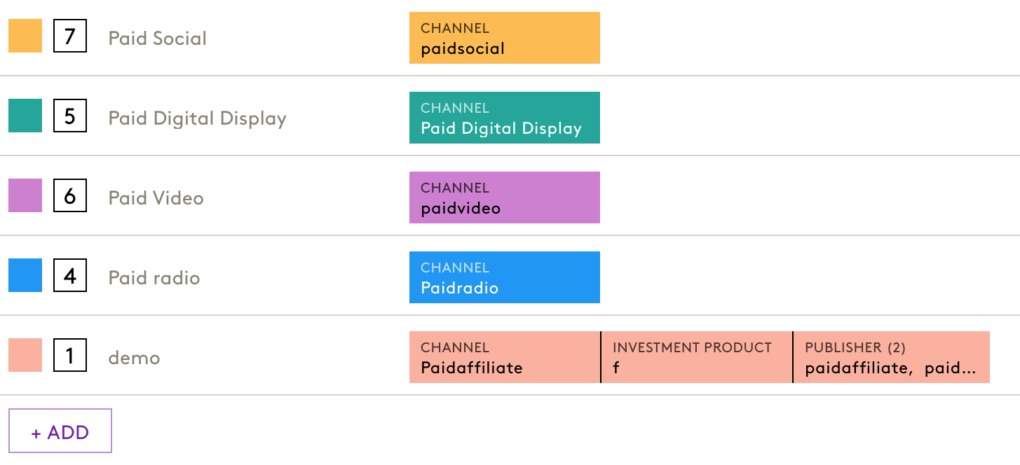 - Group Name (e.g., ‘Paid Social’, ‘Paid Print’)