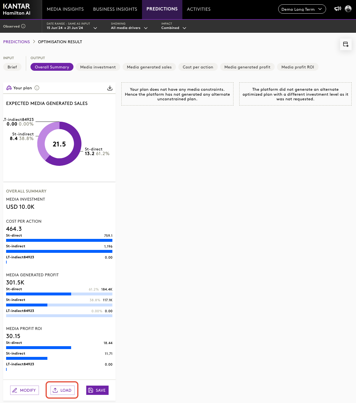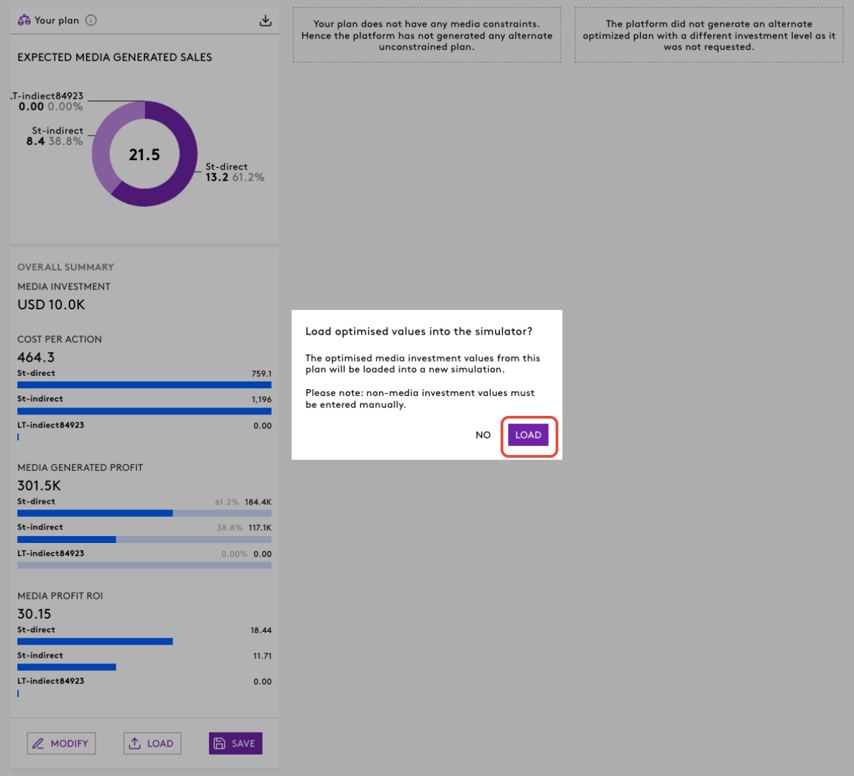 - The system creates a new Simulation scenario with variables populated from the optimisation output.